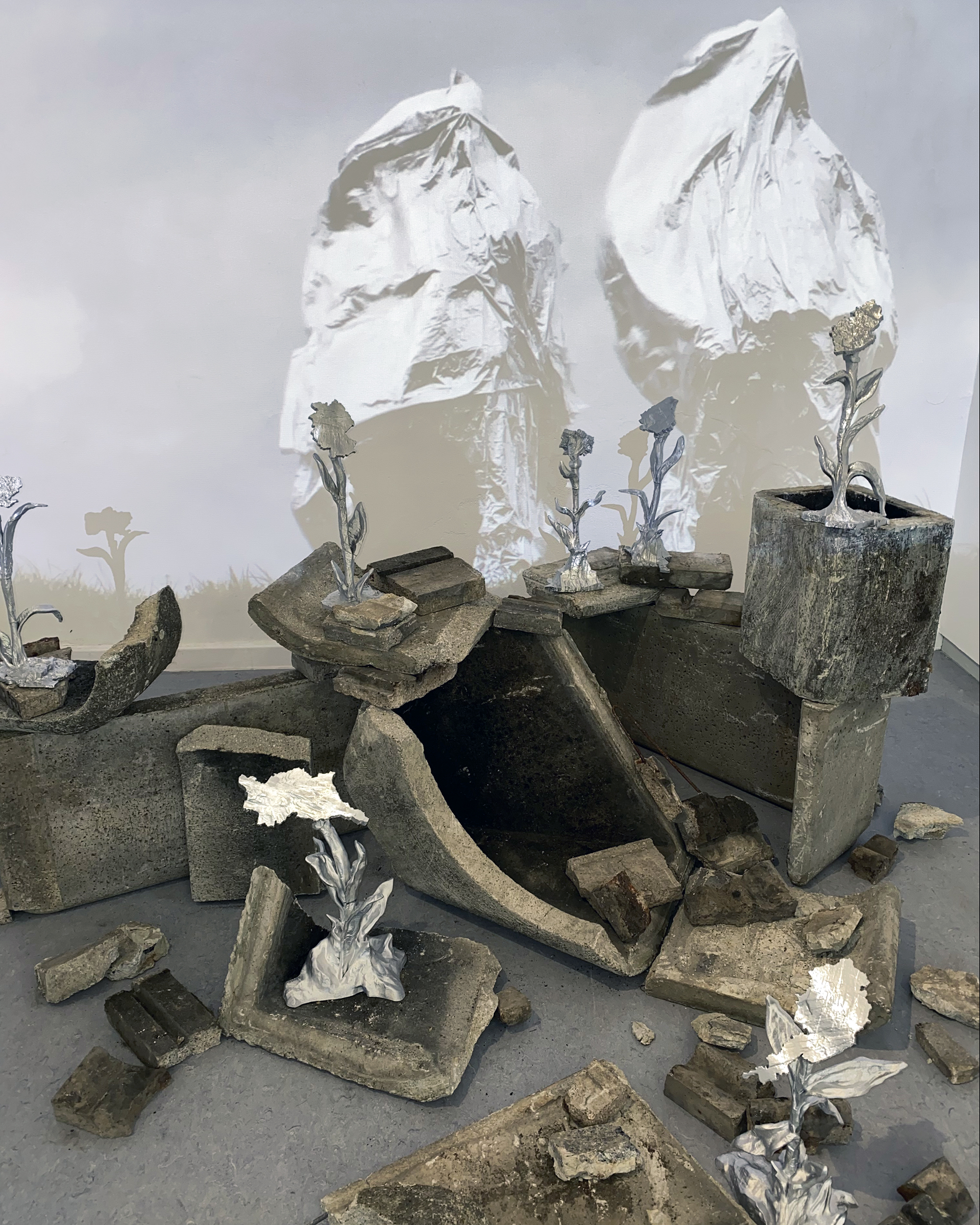 The installation incorporates video and sculptural elements, as well as found architectural forms that serve as a base for the bouquet. The shape of the bouquet changes depending on the exhibition context, emphasizing its fluidity and adaptability. When presenting the work, the artists explore the host country's legal frameworks and attempt to obtain documentation for relationship registration. With the support of the Museum of Emigration in Gdynia, where the work was first exhibited, and through a court process, the artists received official permission to register their marriage in Poland. They continue to seek such documentation, treating the process of obtaining legal recognition as intrinsic to the work.